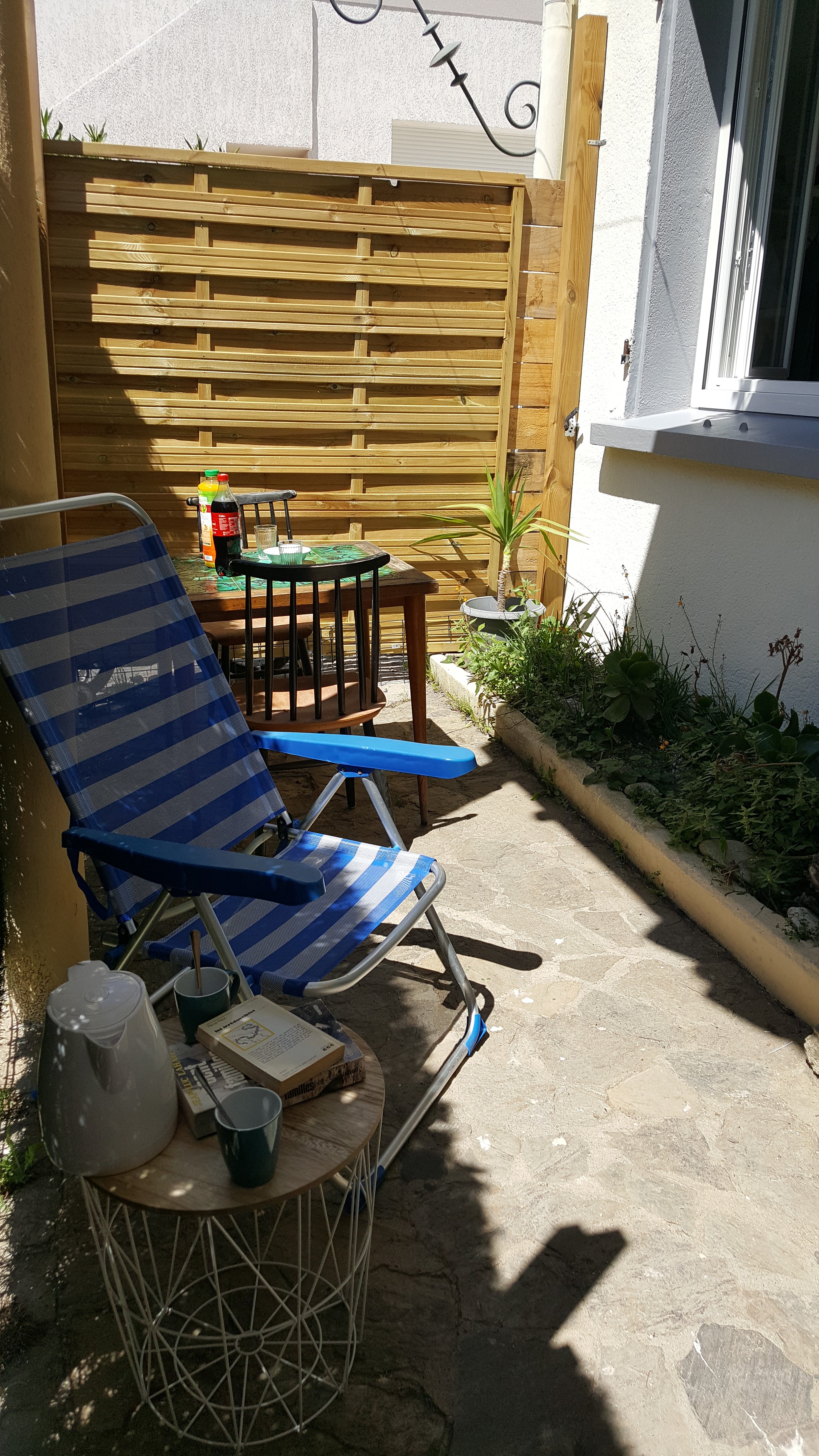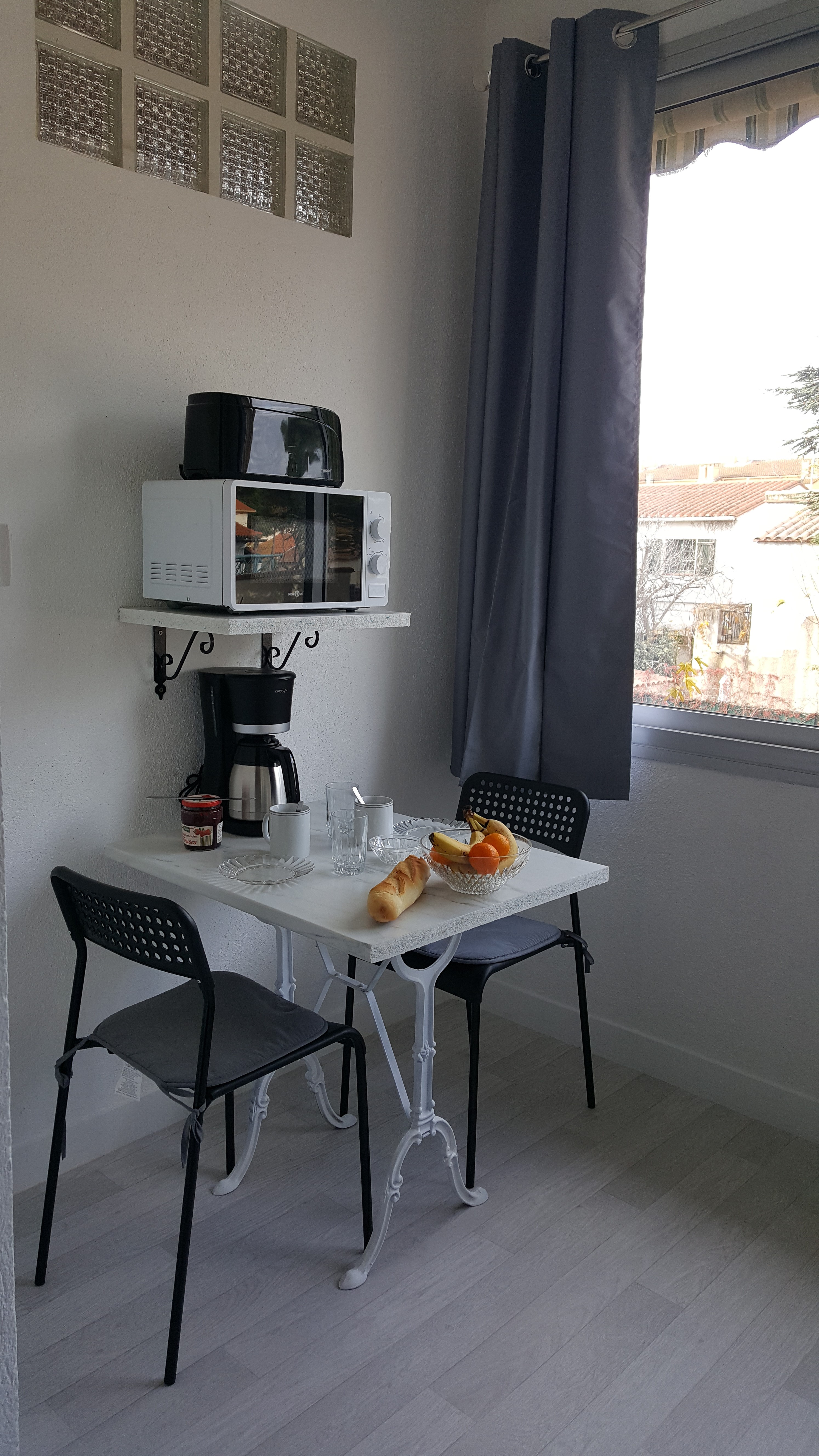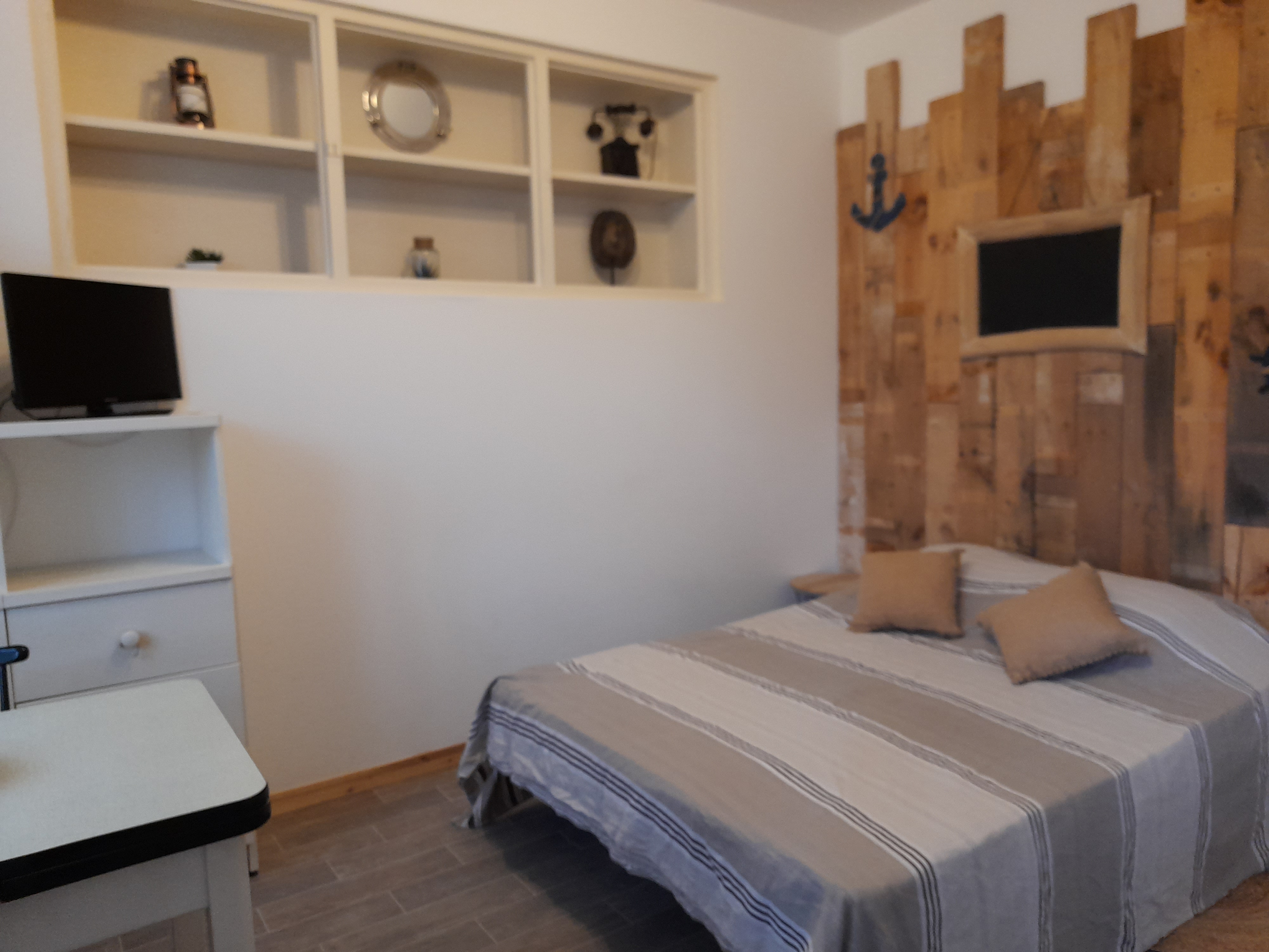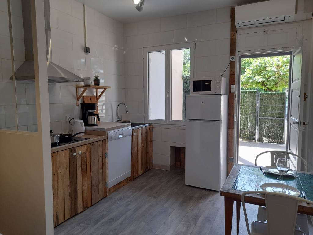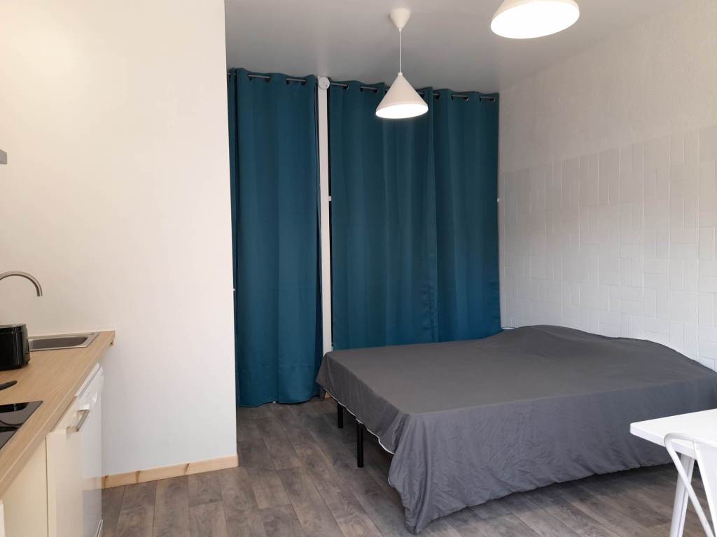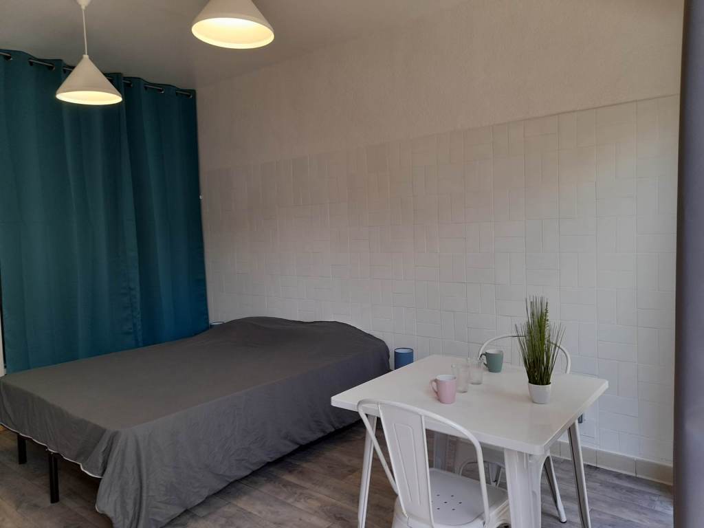 Studio tout confort avec CLIM, PARKING sécurisé, WIFI, TV,cuisine, micro ondes, frigo congélateur, grille pain, cafetière, bouilloire et SDB. Lit 2 pers 160 x 200. Extérieur privé avec table et chaises. Petite Résidence calme et familiale de 8 appartements.