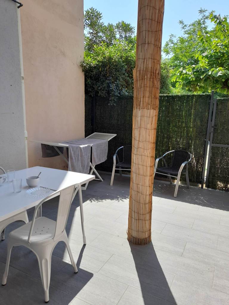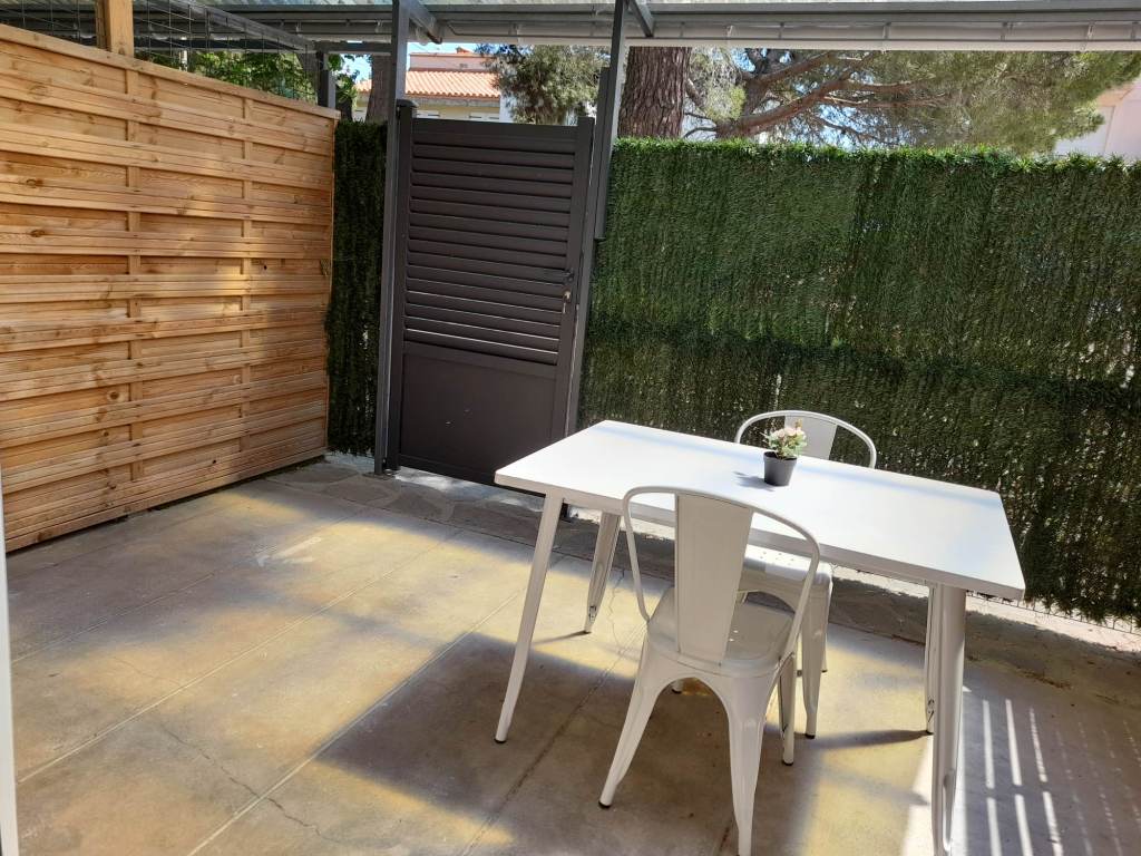 Studio tout confort avec CLIM, PARKING sécurisé, WIFI, TV,cuisine, micro ondes, frigo congélateur, grille pain, cafetière, bouilloire et SDB. Canapé lit rapido. Extèrieur privé avec table et chaises. Petite Résidence calme et familiale de 8 appartements.