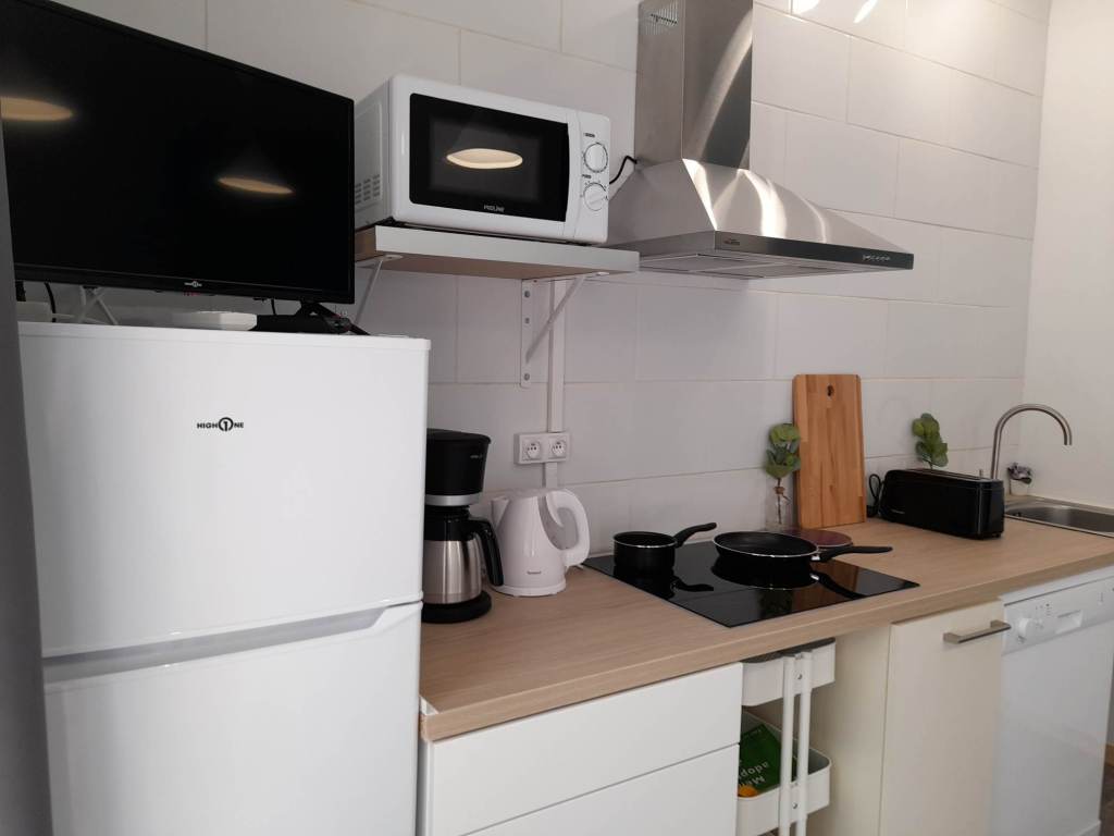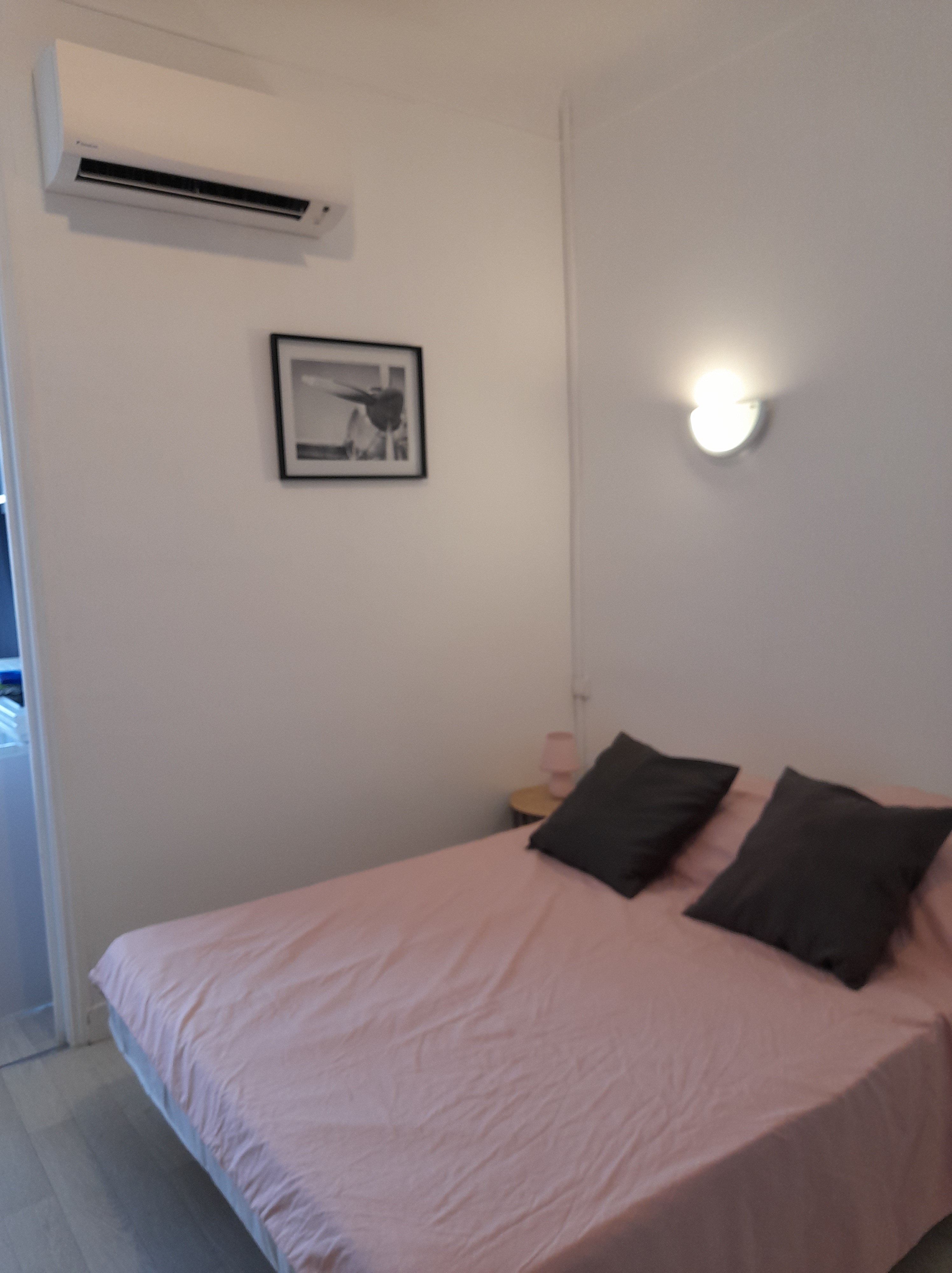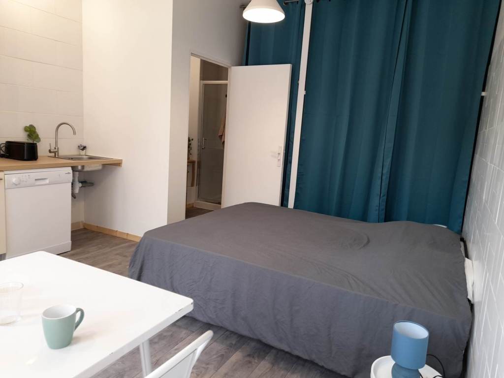 Studio tout confort au 1er étage, avec CLIM, PARKING, WIFI, TV,cuisine et SDB. Canapé lit rapido couchage en 140. Vaisselle, grille pain, cafetière, bouilloire. Petite Résidence calme et familiale de 10 appartements.